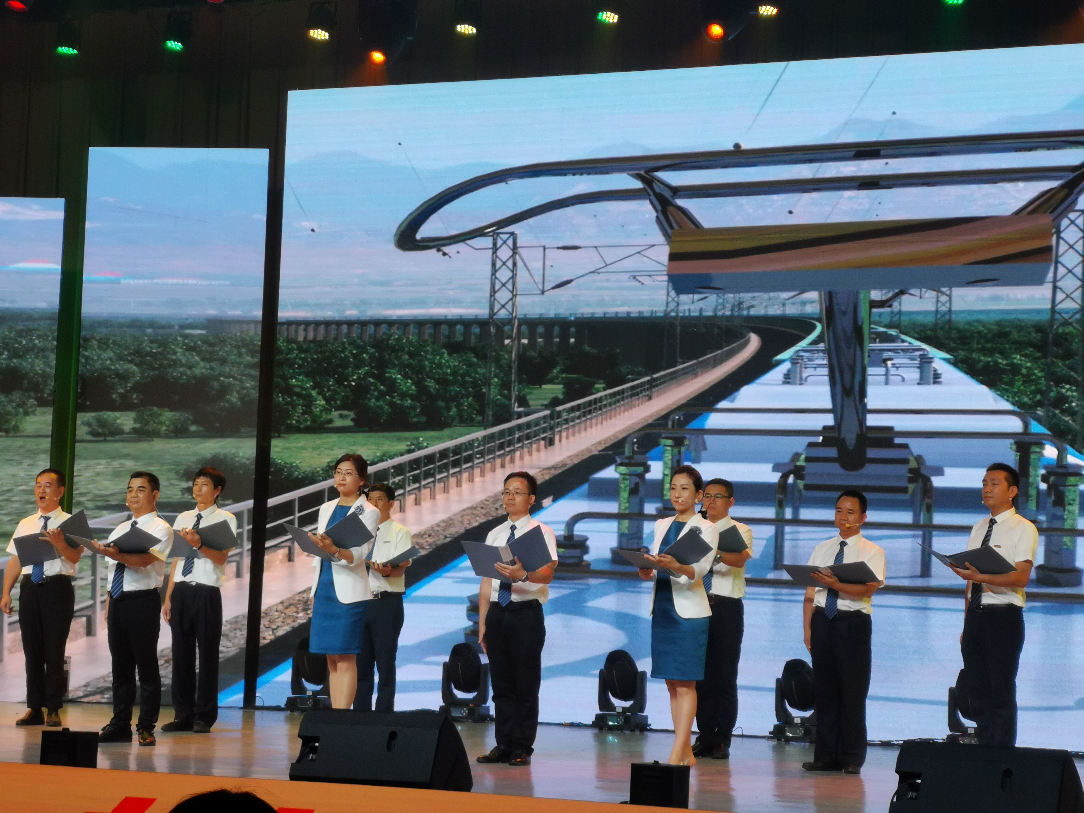 我院選送的節(jié)目詩(shī)朗誦《軌道交通譜新篇》參加了此次匯演,作品由孫基書(shū)記原創(chuàng),展現(xiàn)了學(xué)院全體師生對(duì)軌道交通事業(yè)的熱愛(ài),抒發(fā)了團(tuán)結(jié)拼搏、積極向上的豪情壯志。隨著背景音樂(lè)的響起,由我院教職工代表組成的演出隊(duì)伍排著整齊的步伐登上舞臺(tái),表演開(kāi)始激情澎湃的詩(shī)句從演出人員口中朗朗誦來(lái),那堅(jiān)定的眼神、鏗鏘有力的聲調(diào),無(wú)不體現(xiàn)出我院教職工的驕傲與自信。演出結(jié)束場(chǎng)內(nèi)掌聲此起彼伏,觀眾臉上的贊許是對(duì)演員們盡心盡力演出最好的回報(bào)。