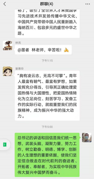 2019級城市軌道交通運(yùn)營管理1班林舒婷:讀習(xí)近平總書記給北大留學(xué)生的回信,其中印象讓我深刻的是中國共產(chǎn)黨致力于發(fā)展經(jīng)濟(jì)、消除貧困,積極援助其他國家抗擊新冠肺炎疫情。中國共產(chǎn)黨做這些事情,是因?yàn)橹袊伯a(chǎn)黨是為中國人民謀幸福的政黨,也是為促進(jìn)人類進(jìn)步事業(yè)而奮斗的政黨。也正是中國共產(chǎn)黨我們祖國現(xiàn)如今繁榮昌盛,我們作為中國的大學(xué)生要跟黨走,做有利于人民的事,現(xiàn)在更是要好好學(xué)習(xí)天天向上!