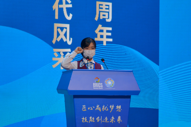 金磚國家工商理事會(huì)(中方)技能發(fā)展工作組組長(zhǎng)、大賽組委會(huì)執(zhí)委會(huì)主席劉振英博士發(fā)表講話。他指出,金磚大賽旨在為金磚國家建立人才選拔通道,提升人才培養(yǎng)能力,服務(wù)先進(jìn)制造領(lǐng)域;舉辦金磚大賽城軌服務(wù)員賽項(xiàng)是壯大高素質(zhì)技能人才隊(duì)伍、服務(wù)交通強(qiáng)國建設(shè)、推進(jìn)國際交流的切實(shí)舉措。他提到,承辦方福建船政交通職業(yè)學(xué)院辦學(xué)歷史悠久、育人成效顯著、交通運(yùn)輸特色鮮明、國際交流佳訊頻傳,是中國特色高水平高職學(xué)校建設(shè)單位,“1+X”證書制度試點(diǎn)數(shù)、技能競(jìng)賽成績(jī)居于全國前列,辦賽基礎(chǔ)良好,定能呈現(xiàn)一場(chǎng)公平、安全的賽事,為來自行業(yè)、院校的選手提供廣闊平臺(tái)。