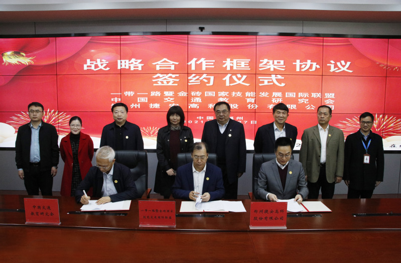 開幕式后,一帶一路暨金磚國家技能發(fā)展國際聯(lián)盟、中國交通教育研究會(huì)、鄭州捷安高科股份有限公司在福建船政交通職業(yè)學(xué)院舉行戰(zhàn)略合作框架協(xié)議簽約儀式,三方領(lǐng)導(dǎo)共同簽署了戰(zhàn)略合作框架協(xié)議,鞏固合作基礎(chǔ)、拓展合作領(lǐng)域、提高合作水平,開啟助力金磚國家技能發(fā)展與技術(shù)創(chuàng)新大賽的合作共贏新篇章。