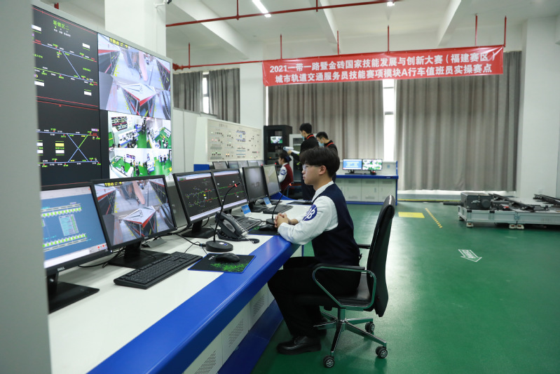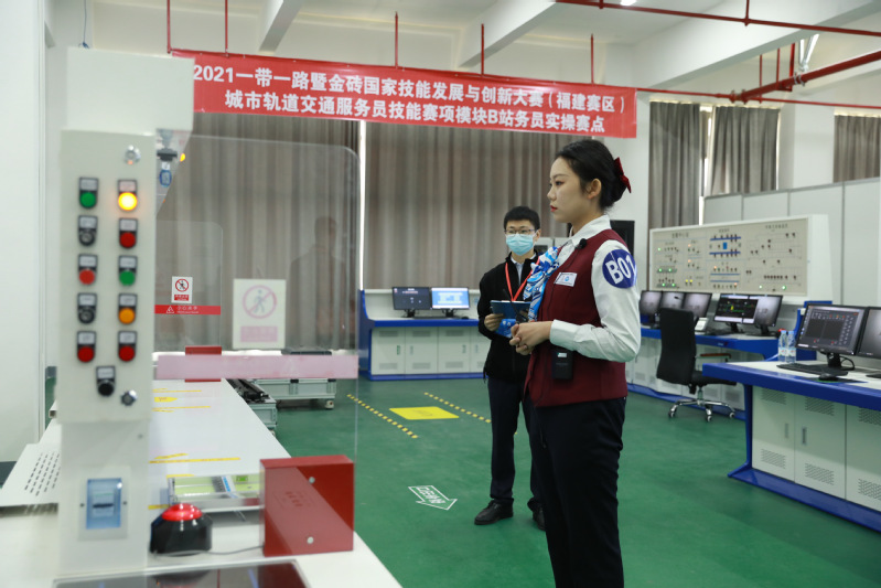 2021年11月27日上午,2021一帶一路暨金磚國家技能發(fā)展與技術(shù)創(chuàng)新大賽城市軌道交通服務(wù)員技能賽項(xiàng)(福建賽區(qū))預(yù)賽開幕式在福建船政交通職業(yè)學(xué)院文體中心隆重舉行。