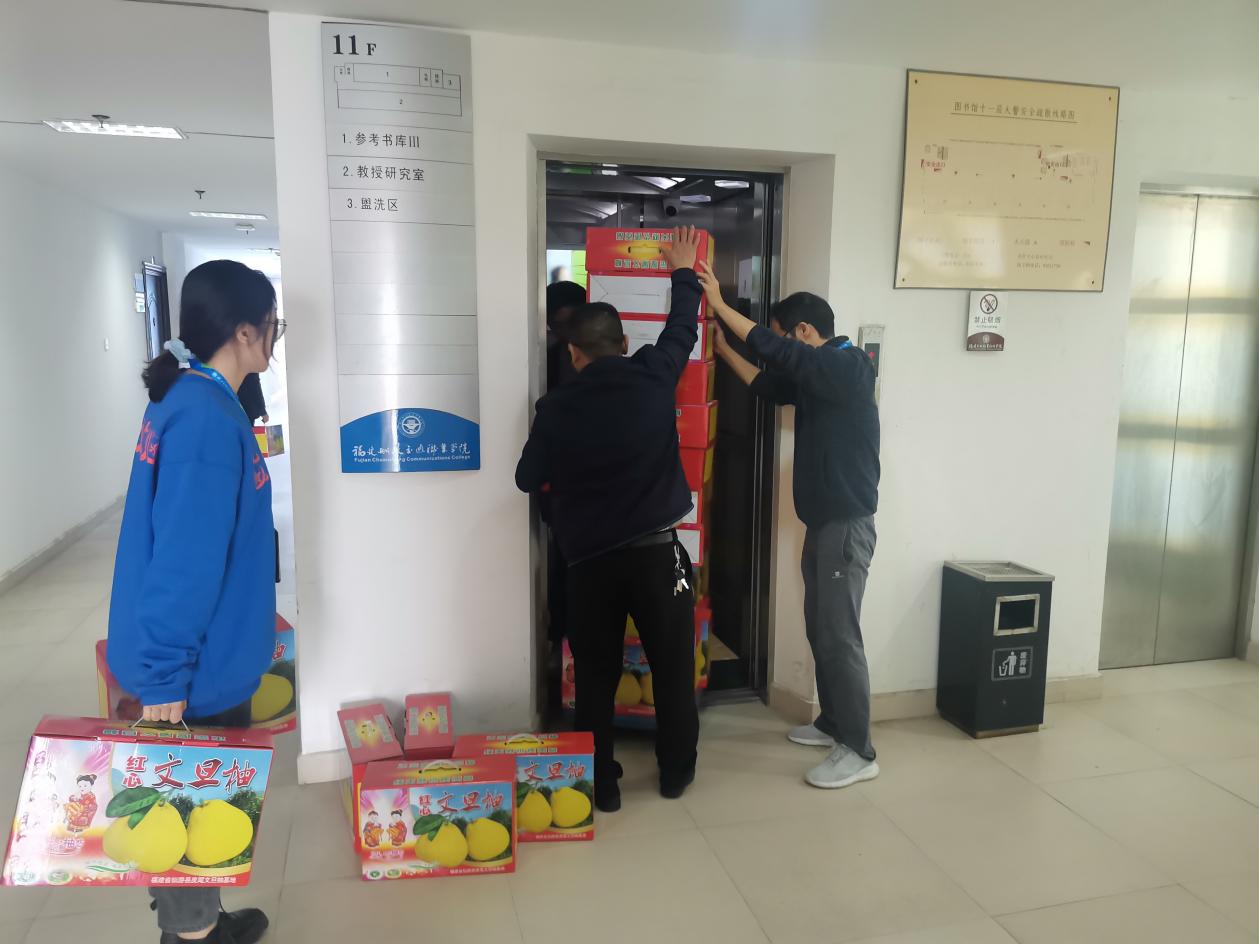 學(xué)院工會(huì)貼心為廣大教職工們每人準(zhǔn)備了一箱莆田文旦柚子,王主席連夜通知分工會(huì)第二天領(lǐng)取。一早我院分工會(huì)的志愿者們一起動(dòng)手把柚子搬回了辦公室,進(jìn)行了分發(fā)。