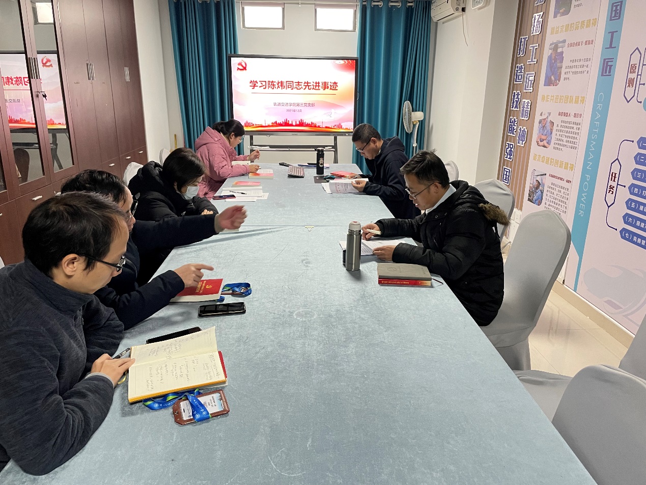 為貫徹落實(shí)中共福建省委教育工委、省教育廳《關(guān)于在全省教育系統(tǒng)深入開展向陳煒同志學(xué)習(xí)活動(dòng)的通知》精神,2021年12月30日下午,軌道交通學(xué)院第三黨支部在圖書館校企合作室開展“陳煒同志先進(jìn)事跡”專題學(xué)習(xí)會(huì),會(huì)議由支部書記陳天炎主持,支部全體黨員參會(huì)。