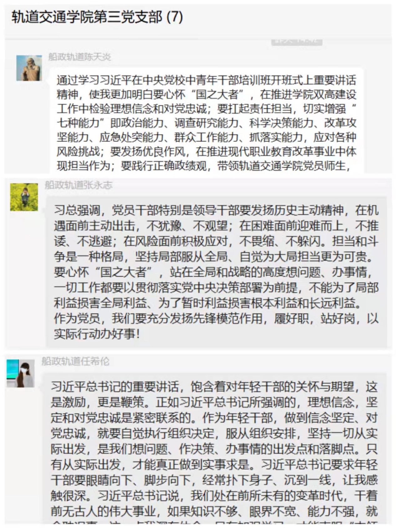 黨員們紛紛表示,通過本次線上“三會一課”集中理論學習,受益匪淺。一是要筑牢理想根基,樹立奮斗品質(zhì)。自省內(nèi)疫情突發(fā)以來,軌道交通學院深入貫徹落實校黨委疫情防控工作要求,成立疫情防控黨員先鋒崗、黨員突擊隊、青年突擊隊,不斷提高政治站位,落實疫情防控責任,從嚴從緊做好當前學院疫情防控工作。二是要堅定理想信念,踐行初心使命。用實際行動扛起責任擔當,統(tǒng)籌推進做好疫情防控和學院雙高建設(shè)工作,不斷推動學院工作更上一個新臺階。
