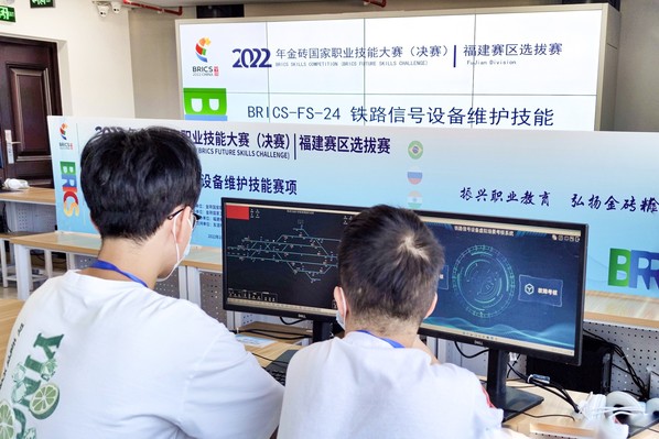 10月11日,在金磚國家職業(yè)技能大賽組委會、金磚國家工商理事會技能發(fā)展工作組和賽項技術(shù)支持單位友道科技有限公司的大力支持下,2022金磚國家職業(yè)技能大賽(決賽)福建省選拔賽——鐵路信號設(shè)備維護技能大賽通過“線上+線下”的方式在我校順利舉辦。來自福建船政交通職業(yè)學院、廈門城市職業(yè)學院、福州職業(yè)技術(shù)學院、福建工業(yè)學校等6所院校的8支參賽隊伍參與了大賽角逐。我校軌道交通學院代表隊榮獲第一名的好成績,成功晉級國賽。