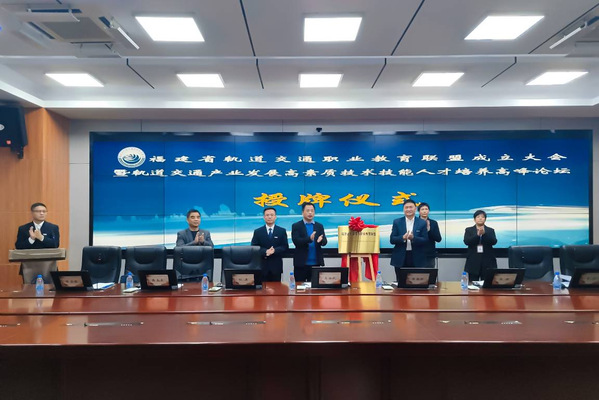 與會(huì)領(lǐng)導(dǎo)共同為福建省軌道交通職業(yè)教育聯(lián)盟揭牌。