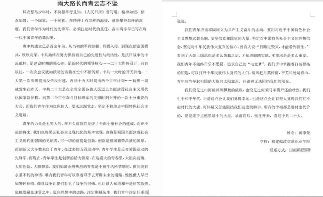 節(jié)選:穿越世紀風云,奔赴百年征程,新時代的青年應有“會當凌絕頂,一覽眾山小”的寬大氣魄,也要有趙云救阿斗的膽大心細。青春正當時,奮斗正當時,在新時代的征程中,我們應留下青春奮斗的痕跡,為自己的花樣年華留下濃墨重彩的一筆。