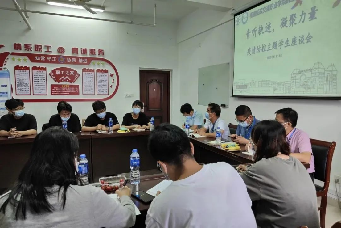 為進一步了解疫情防控期間學生在校學習、生活等方面的需求與困難,有效探索改進措施。我院于2022年11月13日下午,在圖書館十一樓第一會議室召開“疫情防控主題學生座談會”。參加此次座談會的有軌道交通學院住校教職工以及21級與22級學生代表。