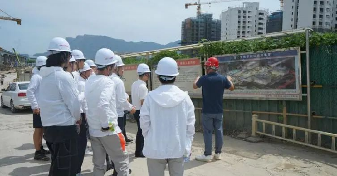 實(shí)踐團(tuán)來(lái)到福州“帝封江”地鐵站施工現(xiàn)場(chǎng)進(jìn)行實(shí)地參觀考察。工程師為實(shí)踐團(tuán)隊(duì)員介紹了工程概況、施工重難點(diǎn)和工程進(jìn)度情況?!暗鄯饨钡罔F站為地下二層/地上三層高架雙島式結(jié)構(gòu),投入運(yùn)營(yíng)后將成為福州地鐵全線首座三線換乘車(chē)站。