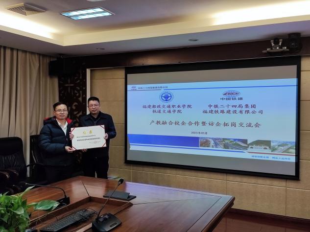 以此次交流會(huì)為契機(jī),作為福建省軌道交通職教聯(lián)盟的理事長(zhǎng)單位,福建船政交通職業(yè)學(xué)院軌道交通學(xué)院代表聯(lián)盟聘任中鐵二十四局集團(tuán)福建公司為副理事長(zhǎng)單位,雙方將共同推動(dòng)福建省軌道交通職業(yè)教育與產(chǎn)業(yè)一體化發(fā)展,打造職業(yè)教育特色品牌,為地區(qū)軌道交通建設(shè)、“一帶一路”沿線國(guó)家培養(yǎng)新型高素質(zhì)專業(yè)人才。
