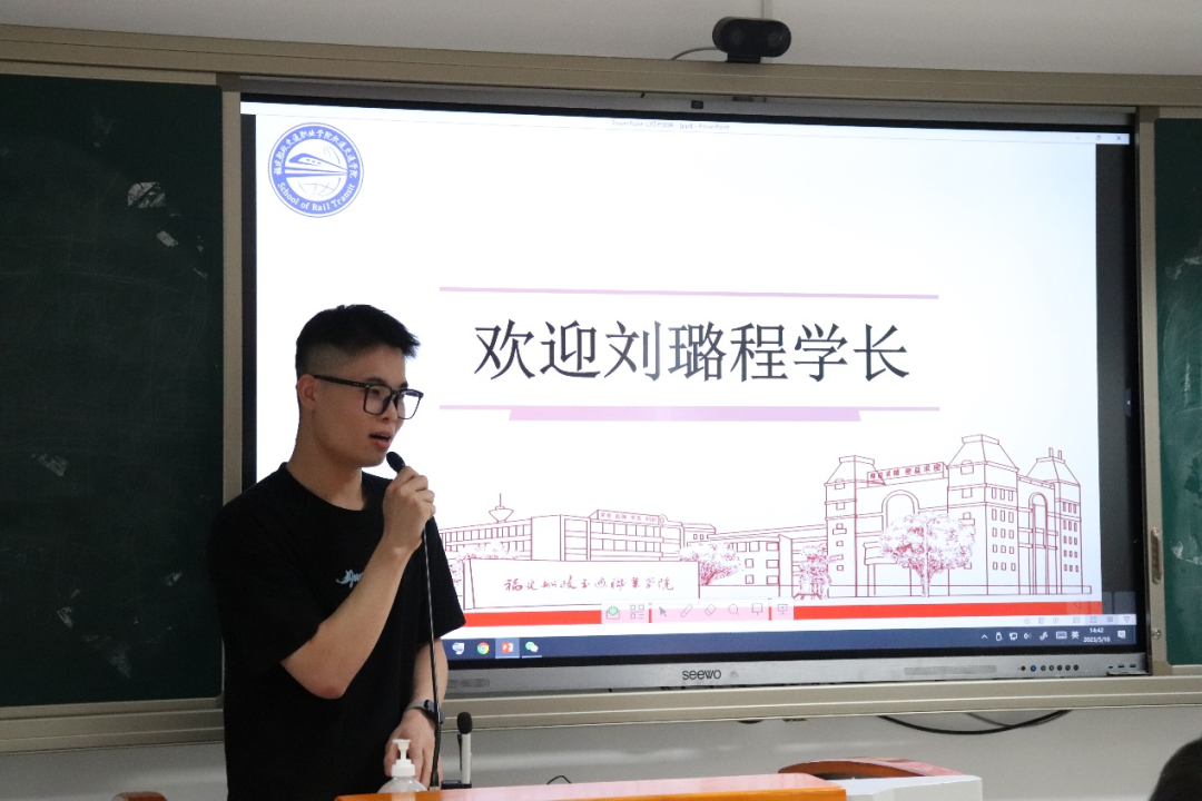 兩位校友結(jié)束經(jīng)驗分享后,由陳宏意副院長給兩位優(yōu)秀校友頒發(fā)軌道交通學(xué)院文創(chuàng)禮品,大家合影留念。