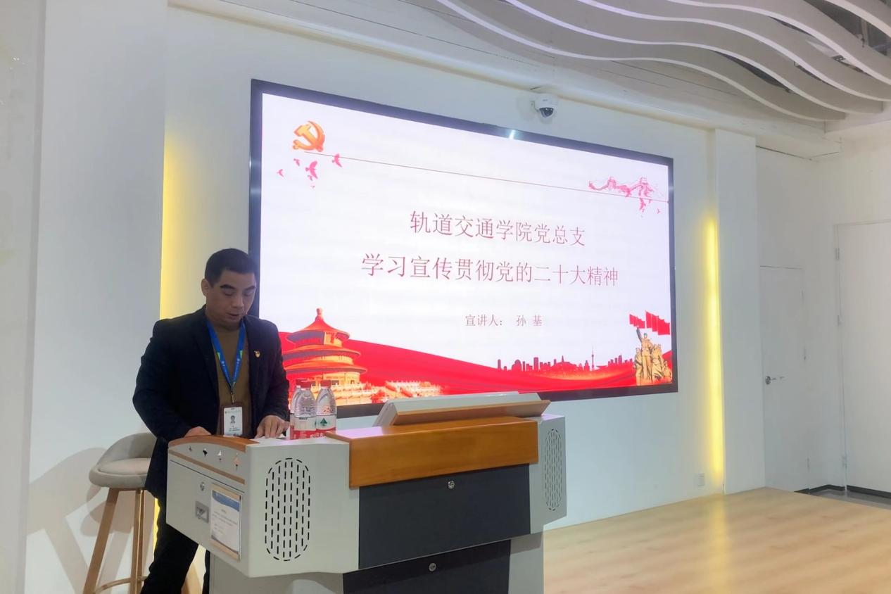 2023年3月1日,軌道交通學院黨總支書記孫基以《學習宣傳貫徹黨的二十大精神》為題,在黨建館為軌道交通學院2021級第一批和第二批入黨積極分子上了一堂別開生面的思政課。