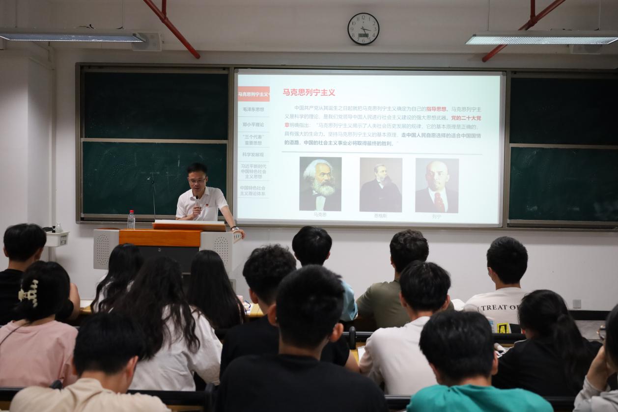 陳天炎院長分別從理論的形成與發(fā)展、理論的主要內(nèi)容、理論的歷史地位三個方面,對馬克思列寧主義、毛澤東思想、鄧小平理論、“三個代表”重要思想、科學(xué)發(fā)展觀、習(xí)近平新時代中國特色社會主義思想展開講解。他指出,全體學(xué)員要深刻理解習(xí)近平新時代中國特色社會主義思想的核心要義、精神實質(zhì)、豐富內(nèi)涵、實踐要求,不斷增強政治意識、大局意識、核心意識、看齊意識,立志做有理想、敢擔(dān)當(dāng)、能吃苦、肯奮斗的新時代好青年,讓青春在全面建設(shè)社會主義現(xiàn)代化國家的火熱實踐中綻放絢麗之花。
