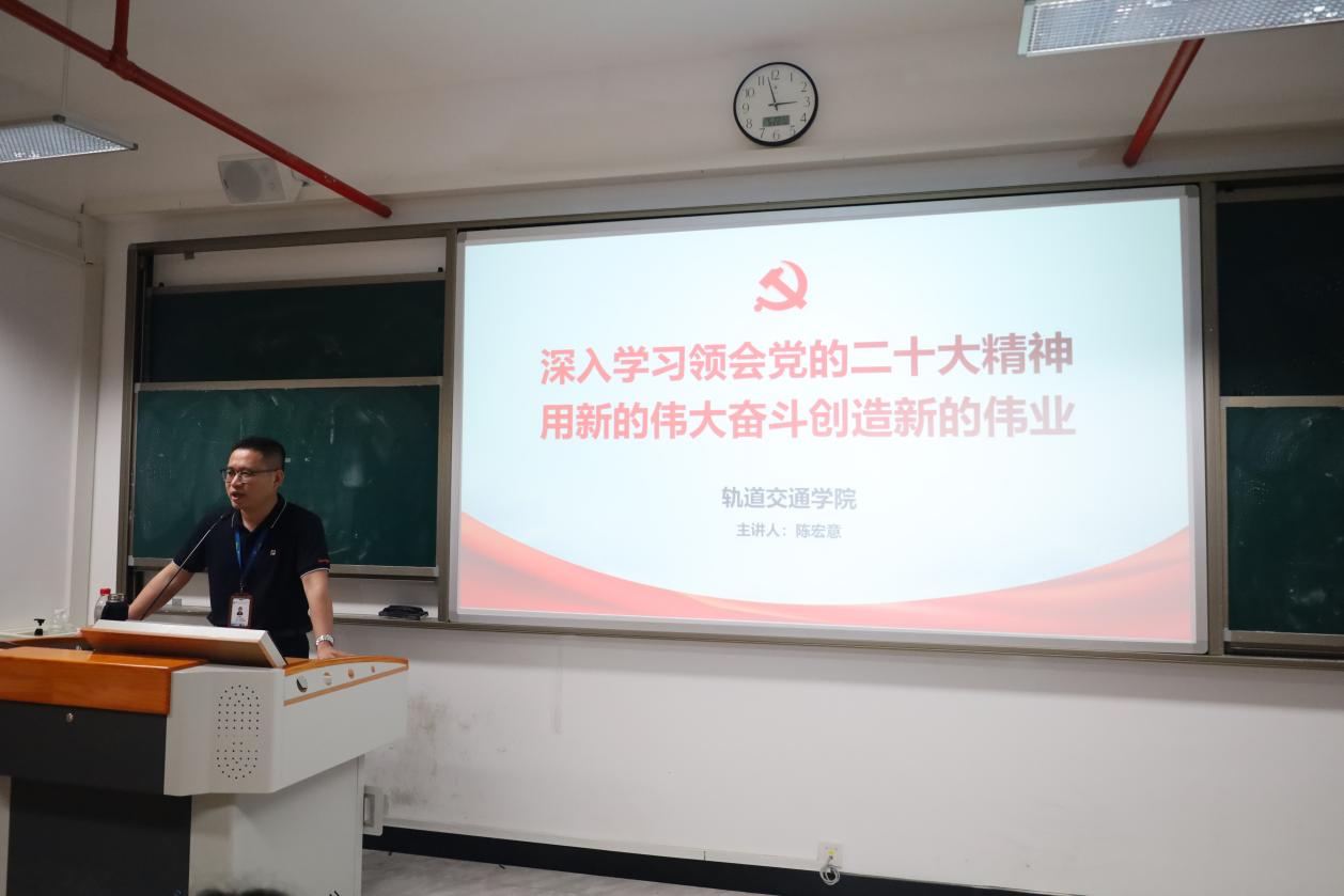 為深入學(xué)習(xí)貫徹習(xí)近平新時(shí)代中國特色社會(huì)主義思想,落實(shí)黨的二十大精神,明確黨和國家的奮斗方向,領(lǐng)悟關(guān)于黨和國家事業(yè)發(fā)展的大政方針和戰(zhàn)略部署的歷史邏輯、理論邏輯、實(shí)踐邏輯,2023522日,軌道交通學(xué)院副院長陳宏意開展了以“深入學(xué)習(xí)領(lǐng)會(huì)黨的二十大精神,用新的偉大奮斗精神創(chuàng)造新的偉業(yè)”為主題的教育宣講會(huì)。