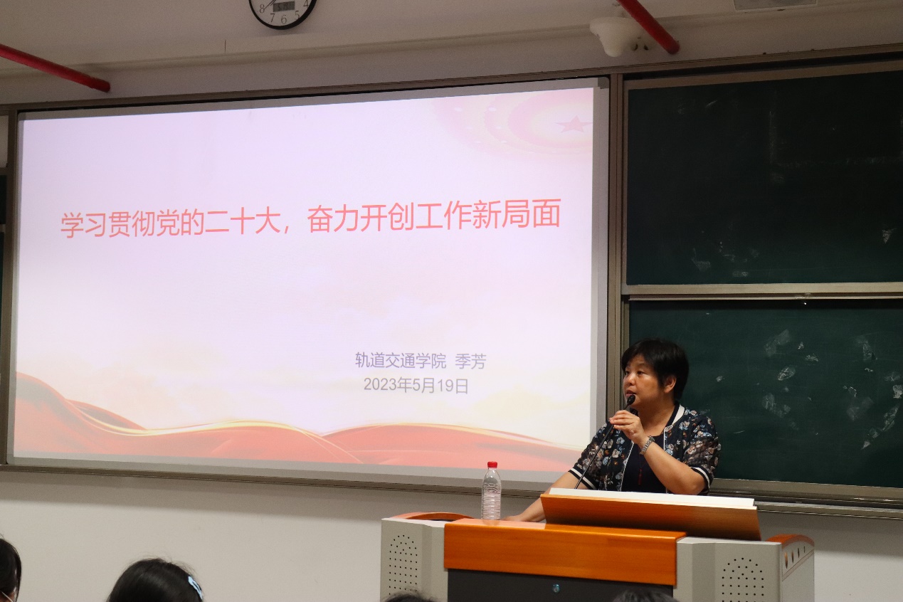 為深入貫徹落實(shí)習(xí)近平總書記關(guān)于“全面學(xué)習(xí)、全面把握、全面落實(shí)”的重要指示要求,持續(xù)推動(dòng)學(xué)習(xí)落實(shí)黨的二十大精神往深里走、往實(shí)里走、往心里走,軌道交通學(xué)院副院長季芳于2023年5月19日開展“學(xué)習(xí)貫徹黨的二十大,奮力開創(chuàng)工作新局面”主題宣講會(huì)。