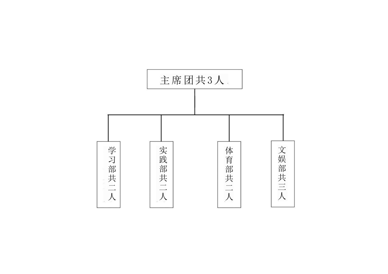 1 | 主席團(tuán) | 3 | 1.負(fù)責(zé)主持學(xué)生會的全面工作,積極與各部門聯(lián)系,參與學(xué)校有關(guān)學(xué)生事務(wù)的管理,維護(hù)學(xué)生權(quán)益; 2.出席學(xué)生會部長會議,聽取工作匯報(bào)及布置工作任務(wù); 3.討論并制定學(xué)生會工作計(jì)劃,決定、布置各項(xiàng)工作,廣泛聽取意見和建議。 |