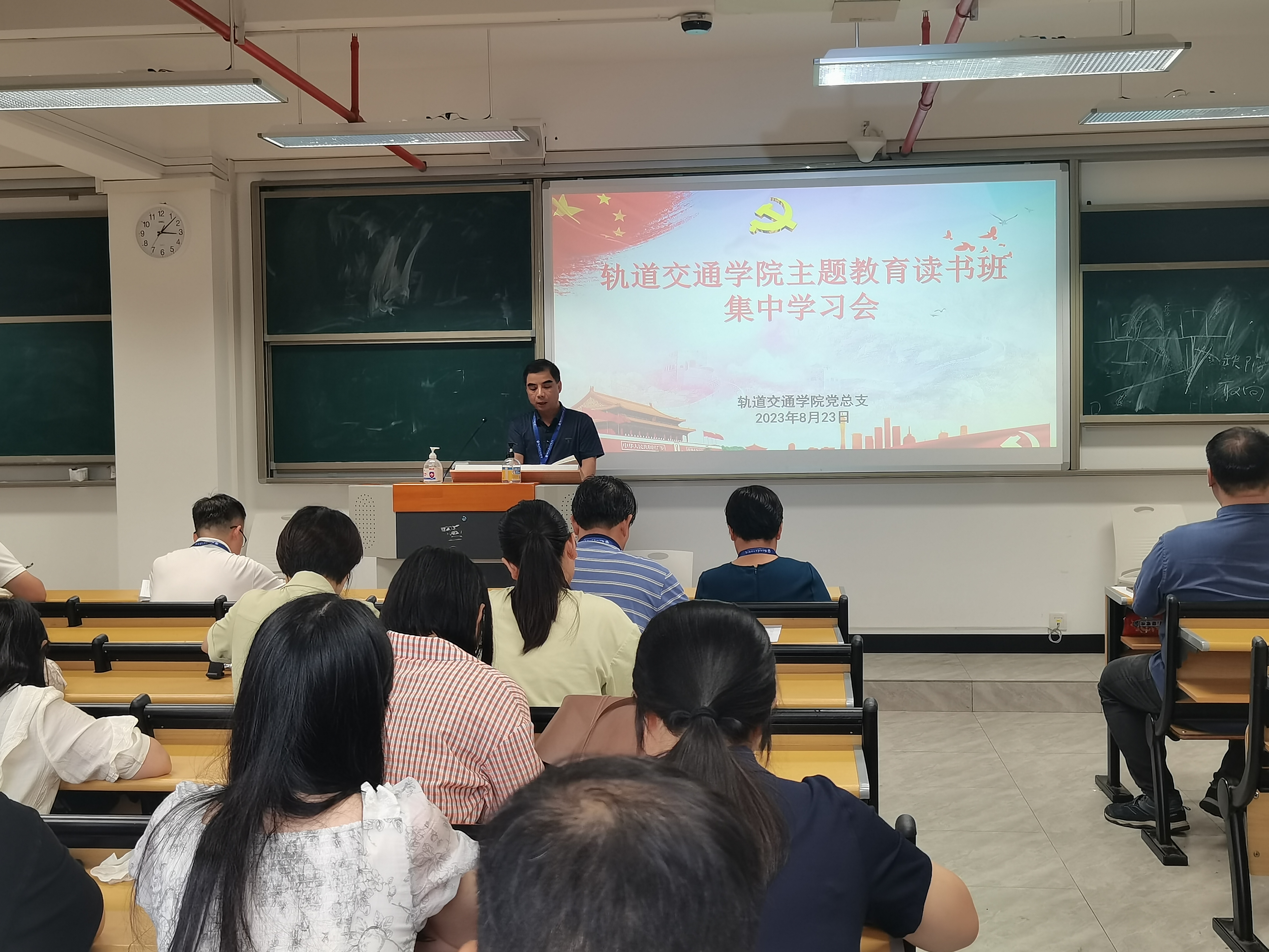 2023年8月23日,軌道交通學院黨總支組織全體教職工黨員集中學習《習近平關于調(diào)查研究論述摘編》,本次會議由軌道交通學院黨總支書記孫基主持。