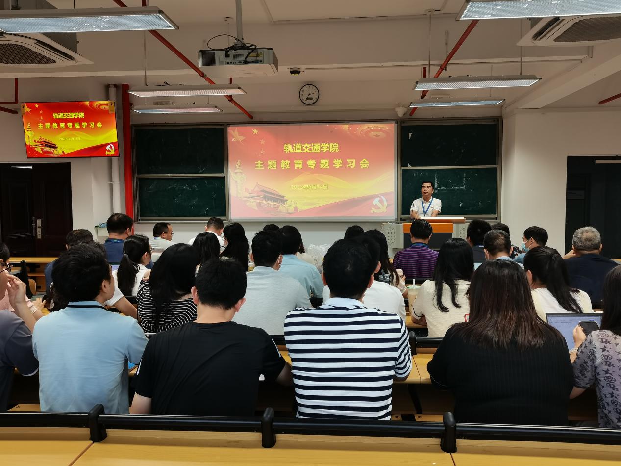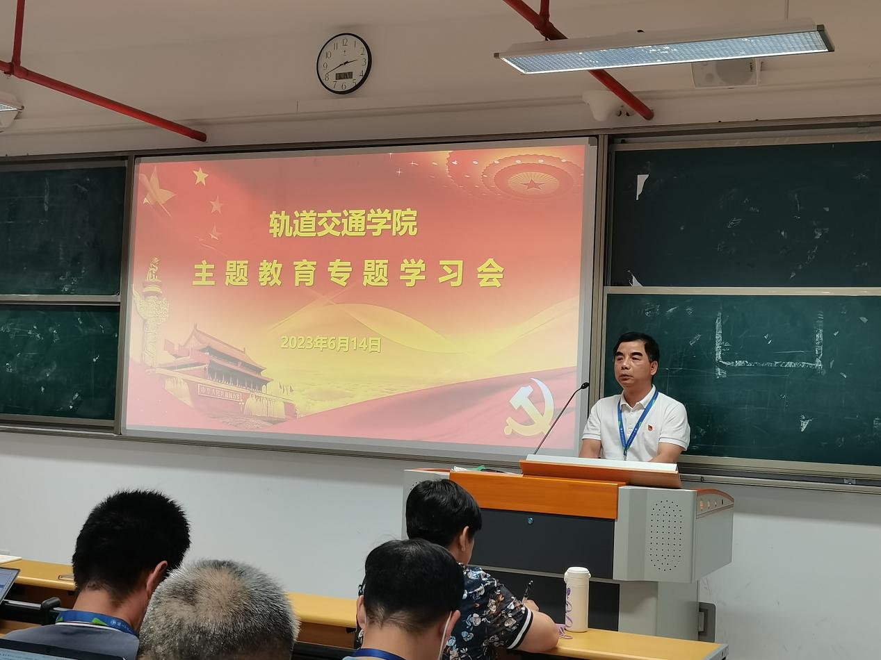 為持續(xù)深入開展學(xué)習(xí)貫徹習(xí)近平新時(shí)代中國(guó)特色社會(huì)主義思想主題教育,2023年6月14日,軌道交通學(xué)院召開主題教育專題學(xué)習(xí)會(huì)。本次專題學(xué)習(xí)會(huì)由軌道交通學(xué)院黨總支書記孫基領(lǐng)學(xué)。