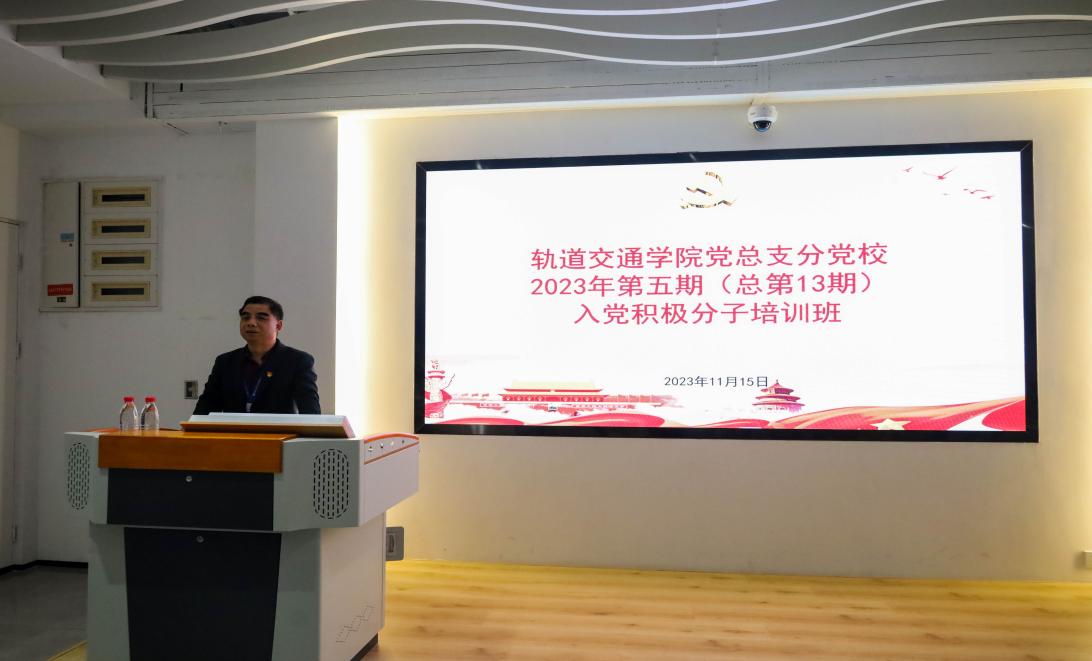 為深入學(xué)習(xí)貫徹習(xí)近平新時(shí)代中國特色社會(huì)主義思想和黨的二十大精神,切實(shí)做好入黨積極分子培養(yǎng)教育工作,提升發(fā)展黨員質(zhì)量,2023年11月15日,軌道交通學(xué)院黨總支書記-孫基在黨建館舉行第十三期入黨積極分子培訓(xùn)。