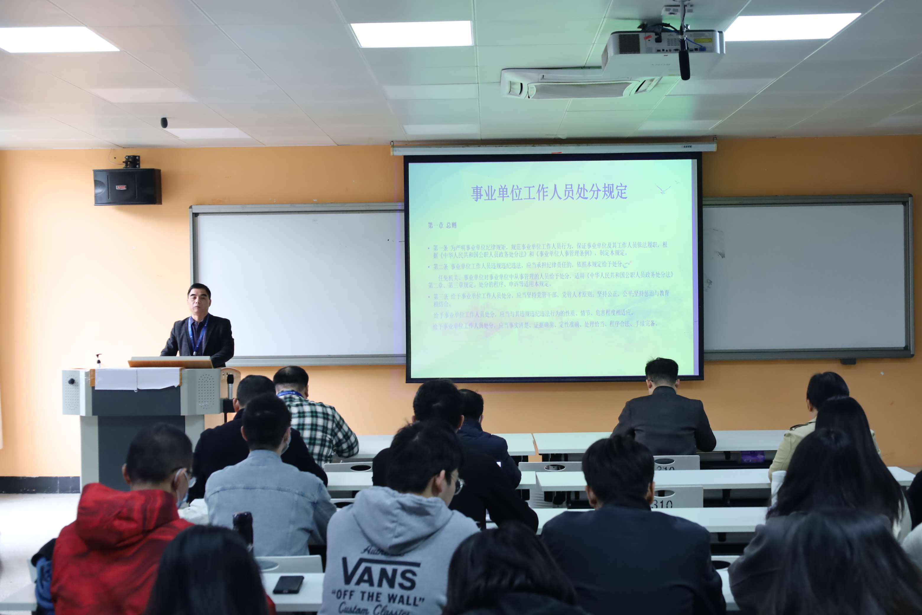 隨后,孫基書(shū)記對(duì)《規(guī)定》的基本框架、重點(diǎn)內(nèi)容進(jìn)行系統(tǒng)解讀,主要從對(duì)事業(yè)單位工作人員處分工作的基本原則、處分的種類和適用、違規(guī)違紀(jì)違法行為及其適用的處分、處分的權(quán)限和程序、復(fù)核和申訴等內(nèi)容,帶領(lǐng)全體干部職工對(duì)《規(guī)定》進(jìn)行了比較系統(tǒng)全面地學(xué)習(xí)。