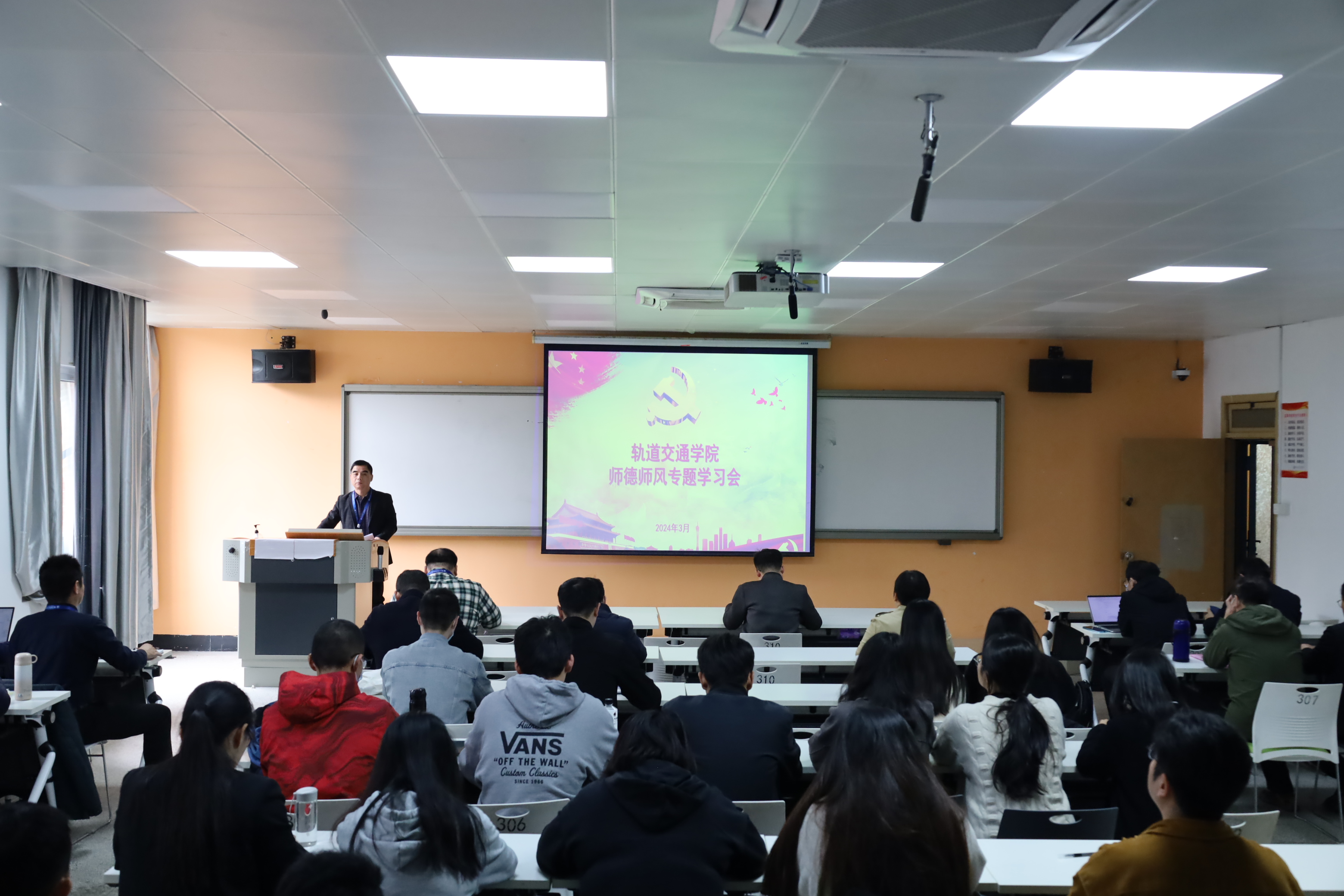 為加強(qiáng)新時(shí)代愛(ài)國(guó)主義教育,傳承和弘揚(yáng)愛(ài)國(guó)主義精神,深刻理解教育家精神的豐富內(nèi)涵和實(shí)踐要求,2024年3月21日,軌道交通學(xué)院組織全體教職工學(xué)習(xí)《中華人民共和國(guó)愛(ài)國(guó)主義教育法》、《事業(yè)單位工作人員處分規(guī)定》(以下簡(jiǎn)稱《規(guī)定》)、《做好教書(shū)育人大先生》等內(nèi)容進(jìn)行專題學(xué)習(xí),本次專題學(xué)習(xí)會(huì)由軌道交通學(xué)院黨總支書(shū)記孫基主持。