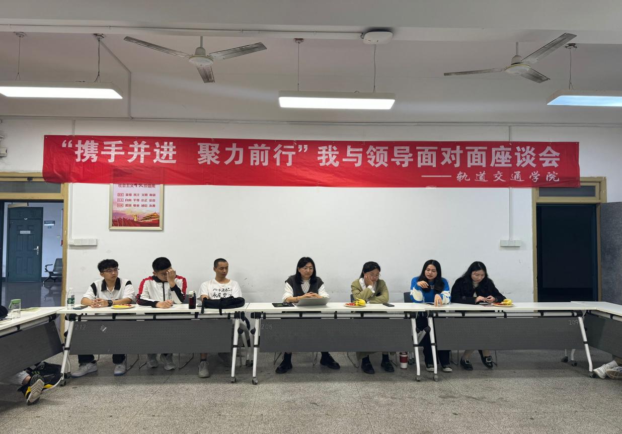 大學(xué),是人生重要的一個(gè)發(fā)展階段,在此階段中面臨著許多的機(jī)遇與挑戰(zhàn),為了使同學(xué)們能了解自己所處的特殊的時(shí)代背景,2024年4月10日,軌道交通學(xué)院開展主題為“攜手并進(jìn),聚力前行”的線下座談會,希望以此來幫助同學(xué)們對自己的目標(biāo)有更清楚的認(rèn)識,以及對未來的規(guī)劃。參加此次座談會的有軌道交通學(xué)院任慧老師、林晨老師、吳吟老師、游鎧威老師、2022級學(xué)生代表及2023級學(xué)生代表。