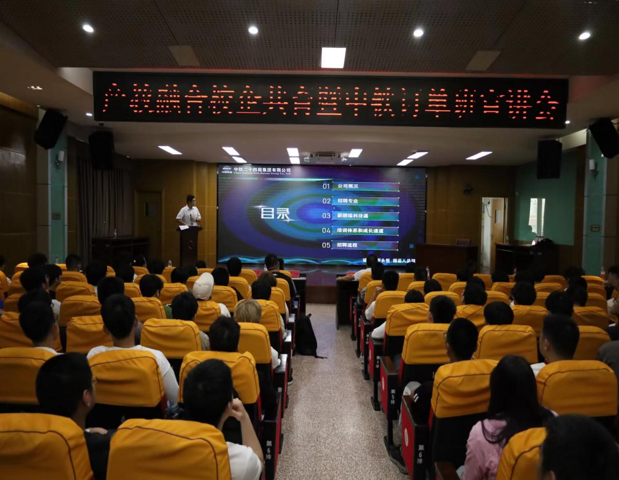 大會伊始,軌道交通學(xué)院黨總支書記孫基與中鐵二十四局集團福建鐵路建設(shè)有限公司蔡許昌部長為本次宣講會致辭。詳細(xì)介紹了中鐵二十四局集團福建鐵路建設(shè)有限公司及雙方合作歷程,強調(diào)了訂單班內(nèi)容和意義。中鐵二十四局集團福建鐵路建設(shè)有限公司作為我院的長期合作伙伴,有著完善的培訓(xùn)體系和富有競爭力的薪酬福利待遇,吸引著同學(xué)們積極參與到宣講會中來。