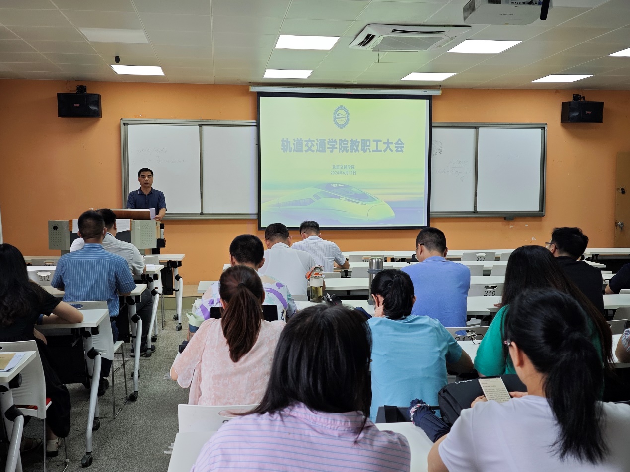 2024年6月12日下午,軌道交通學(xué)院組織全體教職員工深入學(xué)習(xí)習(xí)近平總書記在中共中央政治局第十四次集體學(xué)習(xí)時的重要講話精神。