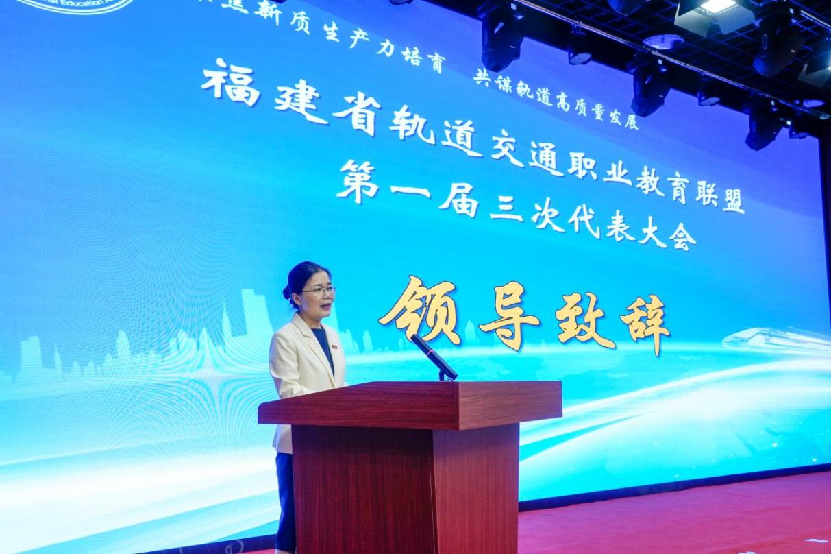 本次大會由福建船政交通職業(yè)學(xué)院和福建省軌道交通職業(yè)教育聯(lián)盟主辦。福建船政交通職業(yè)學(xué)院黨委委員、副校長陳艷紅致辭,對聯(lián)盟兩年來的工作表示肯定。她指出,聯(lián)盟各成員單位能夠發(fā)揮各自的特色和優(yōu)勢,強化校企合作、產(chǎn)教融合,相互協(xié)作支持,共享優(yōu)質(zhì)資源,加快推進高素質(zhì)技術(shù)技能人才培養(yǎng),服務(wù)軌道交通發(fā)展,不斷為交通強國建設(shè)培養(yǎng)更多的能工巧匠、大國工匠。