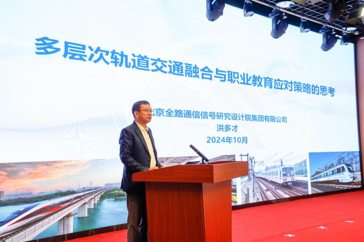 為強化校企合作、產(chǎn)教融合,此次大會還舉行了“聚焦新質(zhì)生產(chǎn)力培育 共謀軌道高質(zhì)量發(fā)展”主題論壇。中國通號研究設(shè)計院集團產(chǎn)教融合中心總工程師、正高級工程師洪多才作題為《多層次軌道交通融合與職業(yè)教育應(yīng)對策略的思考》講座;福建理工大學(xué)交通運輸學(xué)院院長、俄羅斯外籍院士陳德旺教授作題為《基于生成式AI思想的地鐵客流大數(shù)據(jù)自動生成方法》講座;人民交通出版社股份有限公司編輯錢堃作題為《教育數(shù)字化與數(shù)字教材建設(shè)》講座。