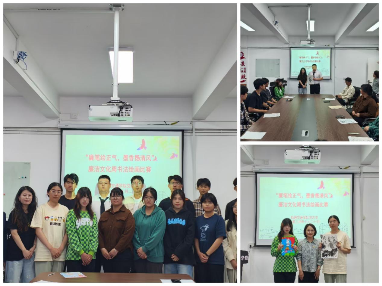 活動(dòng)現(xiàn)場(chǎng),來(lái)自軌道交通學(xué)院各專業(yè)書畫愛(ài)好者們齊聚一堂。他們揮毫潑墨,用手中的筆描繪出一幅幅寓意深刻的廉潔畫卷,書寫出一句句發(fā)人深省的廉政格言?!傲疂嵶月伞薄傲孕奚怼薄扒逭疂?,克己奉公” 等詞句剛勁有力,筆鋒之間盡顯對(duì)廉潔品質(zhì)的崇尚。繪畫作品更是豐富多彩,有的以蓮花為象征,寓意 “出淤泥而不染” 的廉潔之美;有的描繪焦裕祿、孔繁森等清官廉吏的形象,傳遞著公正無(wú)私的精神;還有的以現(xiàn)代社會(huì)中的廉潔場(chǎng)景為藍(lán)本,展現(xiàn)了廉潔在新時(shí)代的生動(dòng)體現(xiàn)。