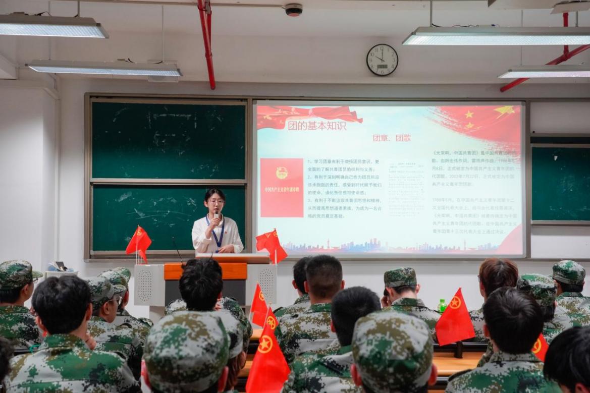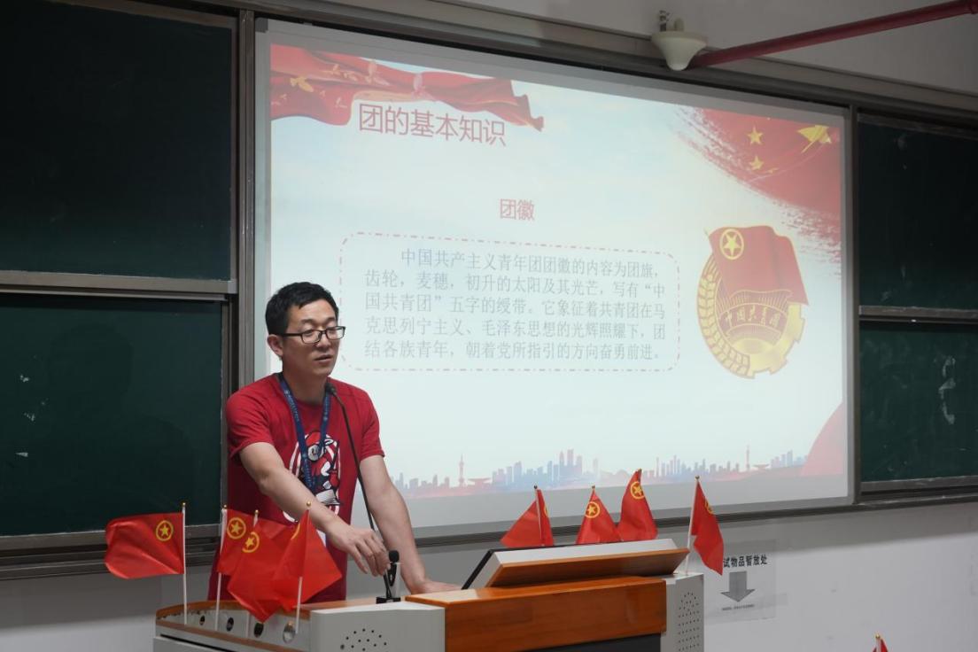 團(tuán)委副書記鄭華輝詳細(xì)闡述了共青團(tuán)的性質(zhì)、團(tuán)旗、團(tuán)徽、團(tuán)歌以及共青團(tuán)的發(fā)展史。他充滿了對青年學(xué)生的殷切期望,希望新時(shí)代的中國青年能以實(shí)現(xiàn)中華民族偉大復(fù)興為己任,不負(fù)時(shí)代以及黨和人民的期望。在青春的賽道上,如乘風(fēng)破浪般奮力奔跑,勇往直前。