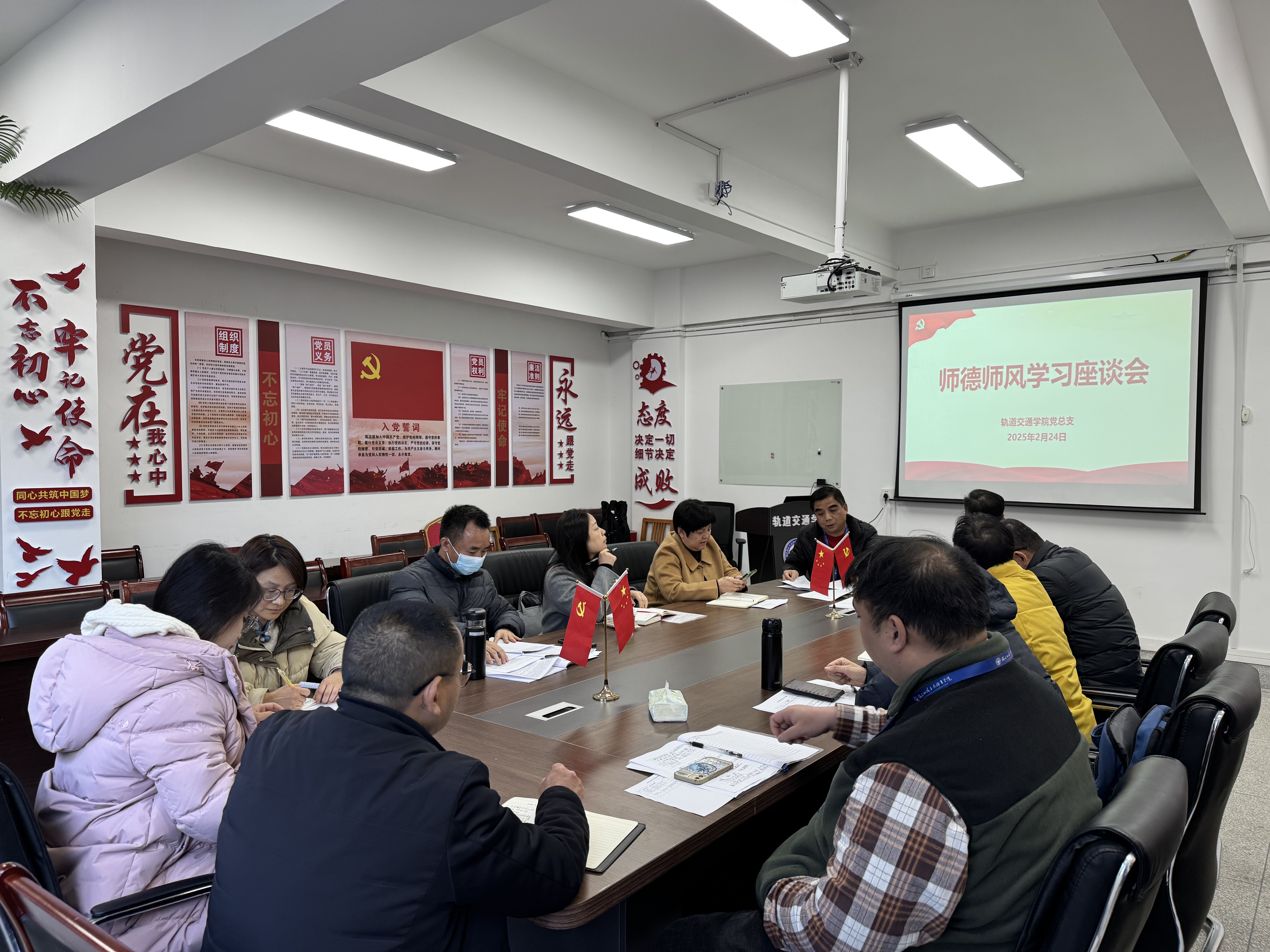 為貫徹落實學校黨委關于開展師德師風問題整治工作的有關文件精神,全面加強師德師風建設工作,2025年2月21日,軌道交通學院召開“師德師風學習座談會”,學院領導、各部門負責人及部分教工代表參加了會議,本次座談會會由軌道交通學院黨總支書記孫基主持。