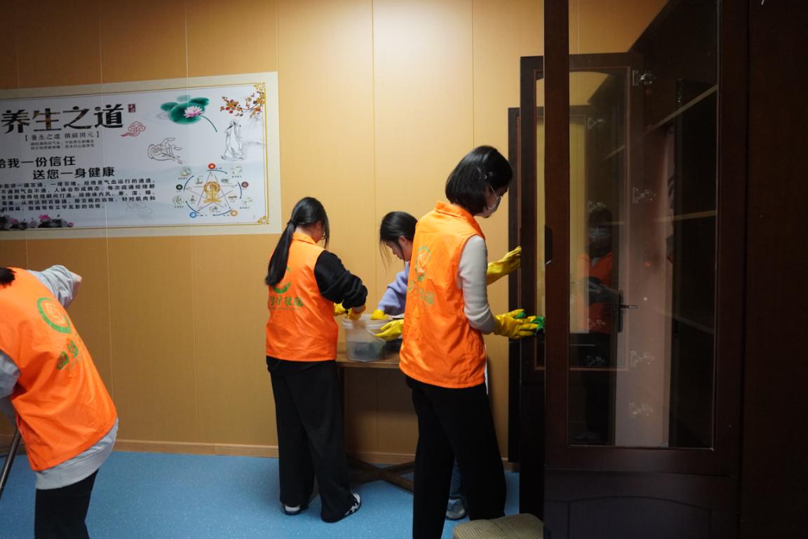 下午,志愿者們走進(jìn)養(yǎng)老院,化身“清潔衛(wèi)士”,分組清掃老人們的活動(dòng)區(qū)域。擦拭窗戶、整理床鋪、消毒公共區(qū)域……每一處細(xì)節(jié)都傾注關(guān)懷。清潔之余,志愿者們圍坐在老人身旁從經(jīng)典老歌到熱心對(duì)話,從回憶分享到笑聲滿堂。志愿者們?yōu)槔先藗兙幙椓艘欢纬錆M歌聲與溫情的午后時(shí)光。