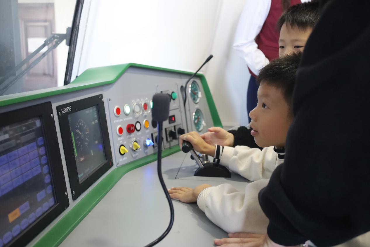 隨后,小朋友們參與了科普活動。他們圍在展示臺旁,對軌道交通模型充滿興趣。這些模型精致而有趣,仿佛將孩子們帶入了一個微縮的軌道交通世界。孩子們臉上洋溢著好奇和興奮,想象著列車在城市中穿梭的場景。在這里,他們不僅能近距離觀察模型,還能深入了解軌道交通的原理和運行方式。