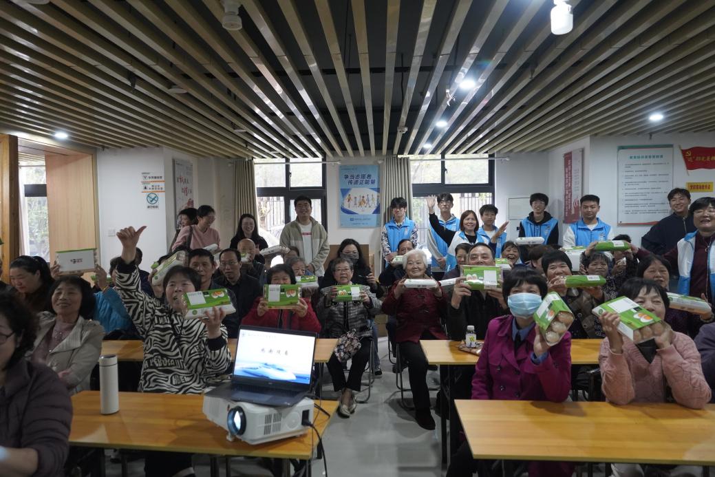 老師們的生動講解吸引著來到現(xiàn)場的社區(qū)居民們,大家紛紛積極參與互動,課堂氛圍和諧歡樂,居民們紛紛表示受益匪淺?;顒咏咏猜?,志愿者們還為社區(qū)居民準備了精美禮品發(fā)放。