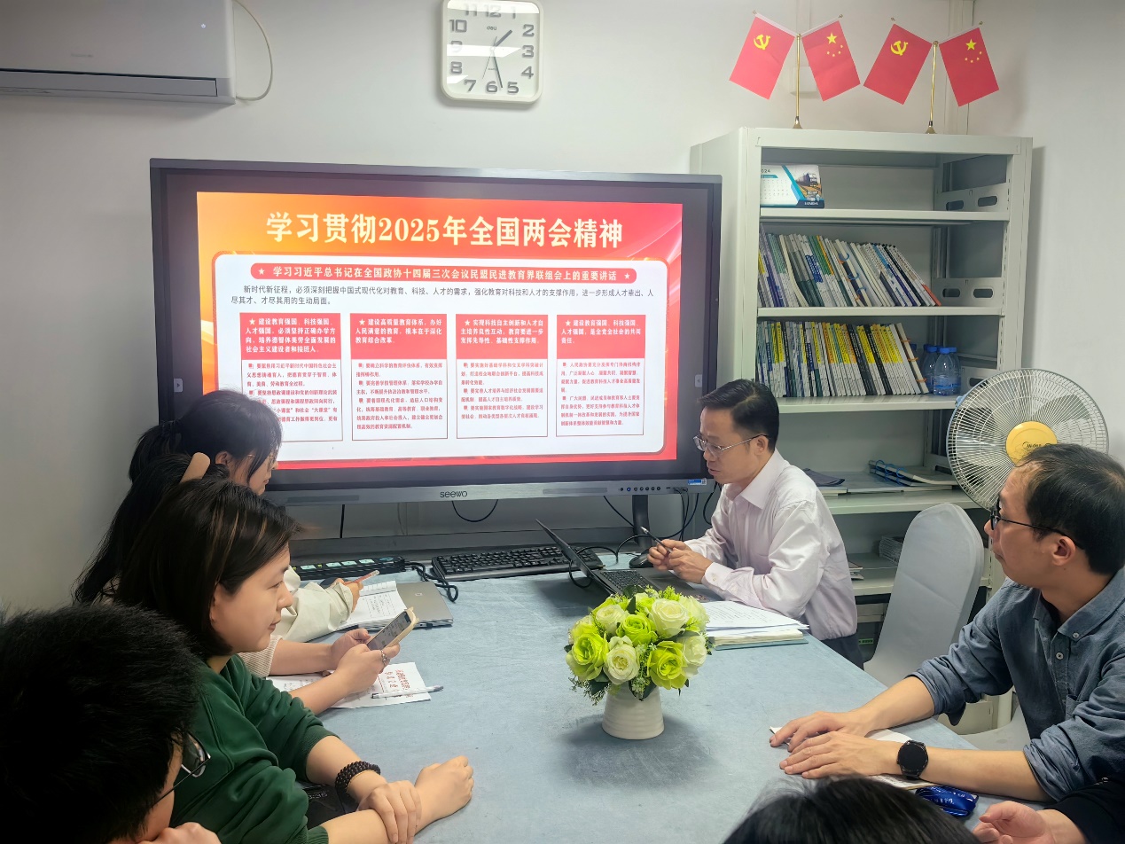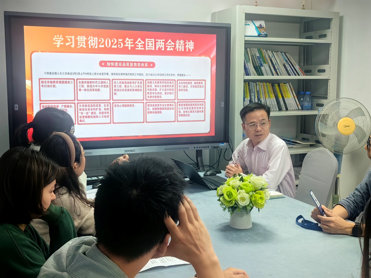 在互動環(huán)節(jié),黨員們踴躍發(fā)言。黃虹老師提出:“在日常教學(xué)中,我們可以引入更多企業(yè)實際項目,讓學(xué)生在課堂上就能接觸到行業(yè)前沿知識,提升解決實際問題的能力?!惫医ɡ蠋焺t表示:“應(yīng)加強與企業(yè)的人才交流,邀請企業(yè)技術(shù)骨干來校授課,同時選派教師到企業(yè)掛職鍛煉,提升師資隊伍的實踐水平?!?大家各抒己見,圍繞如何在教學(xué)、科研、學(xué)生管理等工作中貫徹兩會精神展開熱烈討論。