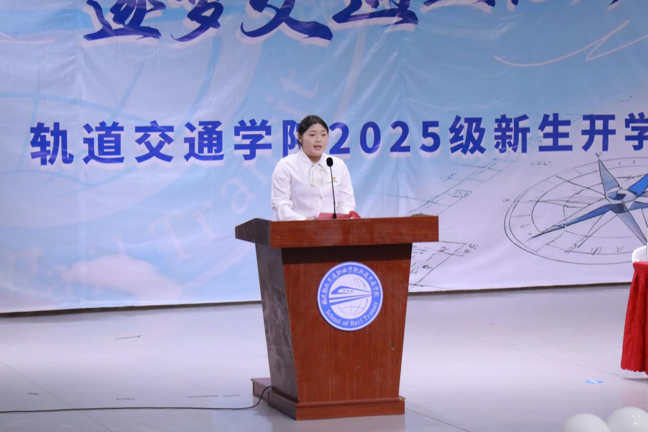 新生代表林智賢則帶著同齡人的共鳴,道出了25級新生的心聲。他分享了自己選擇軌道專業(yè)的初心,表達了對未來學習生活的期待,并代表全體新生承諾:將以勤勉踏實的態(tài)度,學好專業(yè)知識,不負師長期望,努力成長為能為軌道行業(yè)貢獻力量的青年。