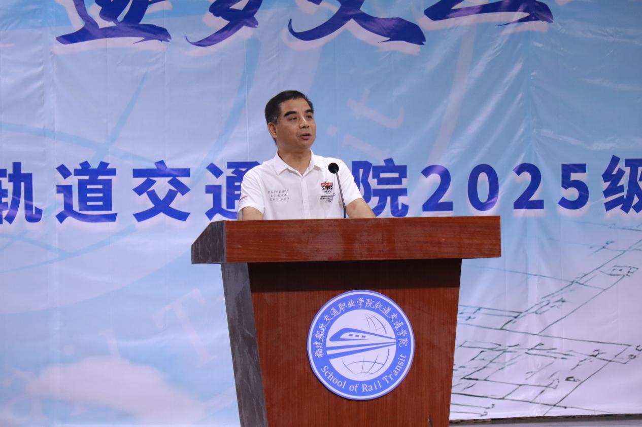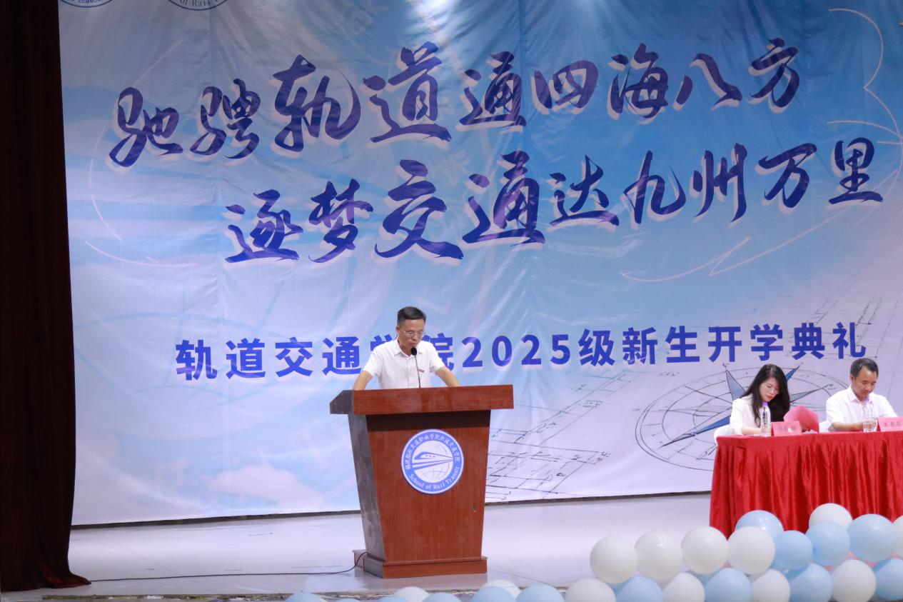 “希望同學們在大學期間,結(jié)交兩個‘摯友’——一個是操場,一個是圖書館?!避壍澜煌▽W院院長陳天炎在致辭中,用親切的比喻為新生指引方向。他鼓勵同學們走出宿舍,在操場揮灑汗水、強健體魄;走進圖書館,在書頁間汲取知識、開闊眼界,以健康的身心與扎實的學識,為未來的軌道事業(yè)打下堅實基礎(chǔ)。