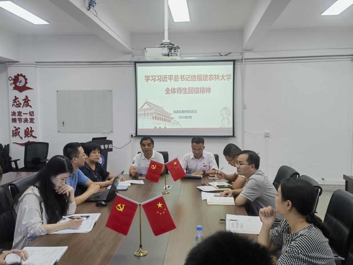 9月29日,軌道交通學院黨總支召開理論學習中心組(擴大)會議,專題學習研討習近平總書記給福建農林大學全體師生的重要回信。會議指出,習近平總書記的回信立意高遠、內涵深刻、情感真摯,充分體現(xiàn)了黨中央對教育事業(yè)的高度重視、對廣大師生和科技工作者的親切關懷,為新時代高校落實立德樹人根本任務、服務國家戰(zhàn)略需求指明了前進方向、注入了強大動力?;匦挪粌H是對福建農林大學師生的鼓舞,也是對全國高校師生扎根一線、服務基層、矢志創(chuàng)新的巨大勉勵,具有重要的政治意義、時代意義和實踐指導意義。
