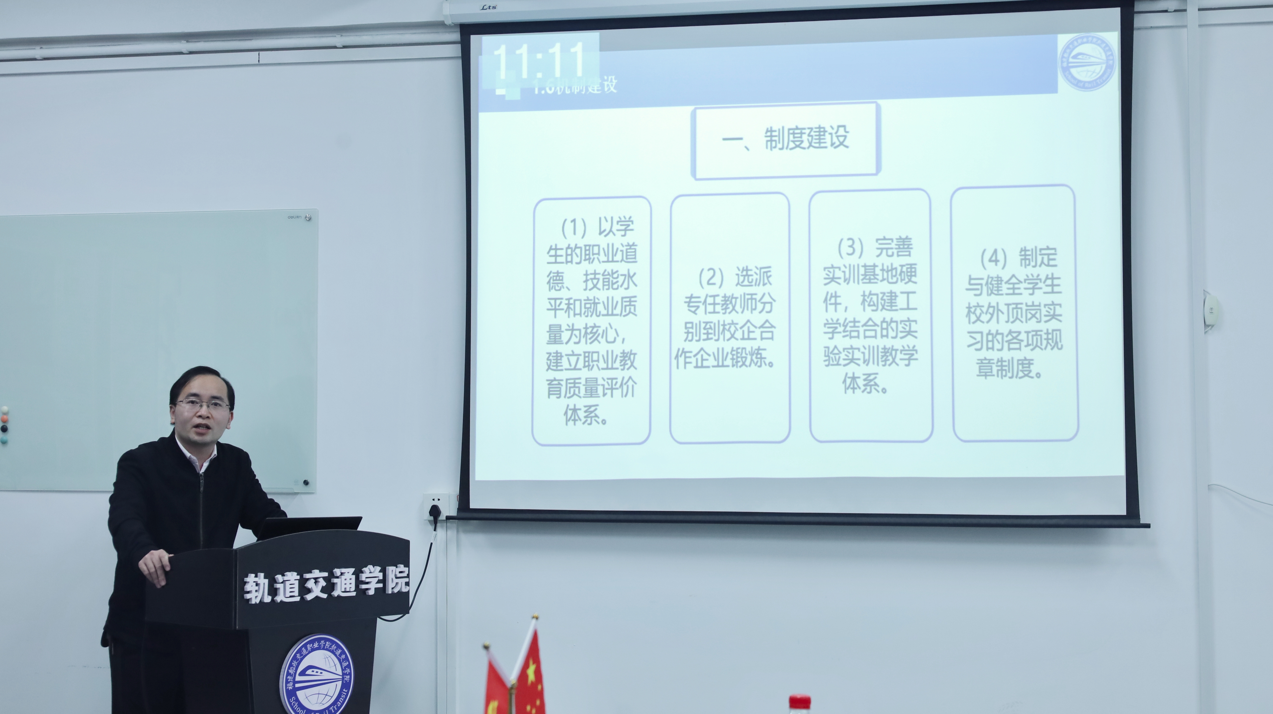 為深入貫徹落實(shí)《教育強(qiáng)國(guó)建設(shè)規(guī)劃綱要(2024—2035年)》及相關(guān)職業(yè)教育改革文件精神,進(jìn)一步推動(dòng)軌道交通學(xué)院專業(yè)建設(shè)與區(qū)域產(chǎn)業(yè)需求的緊密對(duì)接,福建船政交通職業(yè)學(xué)院軌道交通學(xué)院于2025年11月3日成功舉辦了“說(shuō)專業(yè)”比賽。本次“說(shuō)專業(yè)”比賽活動(dòng),吸引了眾多專業(yè)主任和教師的積極參與,展現(xiàn)了軌道交通學(xué)院在專業(yè)建設(shè)方面的最新成就。