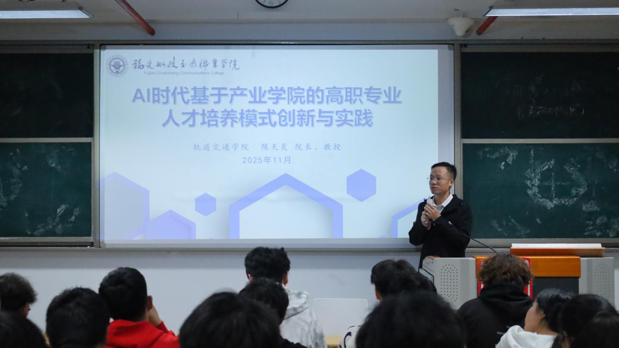 為主動適配 AI 技術(shù)發(fā)展對職業(yè)教育的新要求,深化產(chǎn)業(yè)學院建設(shè),優(yōu)化學院人才培養(yǎng)模式,幫助學生把握AI技術(shù)與職業(yè)教育融合的發(fā)展機遇。近日,我院軌道交通學院院長陳天炎教授作題為“AI時代基于產(chǎn)業(yè)學院的高職專業(yè)人才培養(yǎng)模式創(chuàng)新與實踐”的專題講座。軌道交通學院學生現(xiàn)場聆聽講座。