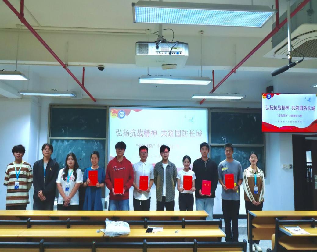 為進一步強化師生國防觀念,軌道交通學院開展“愛我國防”系列活動。10月份舉辦“弘揚抗戰(zhàn)精神 共筑國防長城”愛我國防線下演講比賽。比賽共有20余名選手參賽,選手們圍繞主題,結(jié)合自身感悟,講述抗戰(zhàn)英雄事跡、國防建設(shè)成就以及青年一代的責任擔當,語言生動、情感真摯,贏得了評委和觀眾的陣陣掌聲。經(jīng)過激烈角逐,最終評選出一等獎1名、二等獎2名、三等獎3名,并為獲獎選手頒發(fā)榮譽證書。