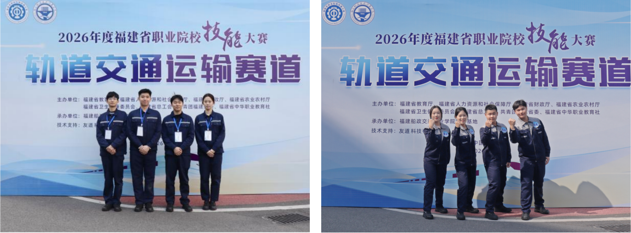 1月12日,2026年度福建省職業(yè)院校技能大賽“軌道交通運(yùn)輸”賽道在福建船政交通職業(yè)學(xué)院圓滿落下帷幕。經(jīng)過為期兩天的激烈角逐,我院兩支代表隊(duì)(一隊(duì)選手:李瑋杰、王希盈、林智賢、曾振檳;二隊(duì)選手:鄭萬強(qiáng)、周清蘭、李豪、顧悅晗)憑借扎實(shí)的操作技能、默契的團(tuán)隊(duì)配合,在18支參賽隊(duì)中脫穎而出,分別榮獲金獎(jiǎng)、銀獎(jiǎng)(賽道總分排名第1、2),為我院爭得了榮譽(yù)。