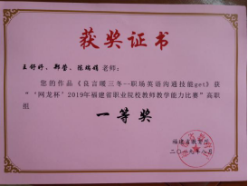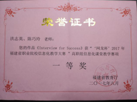 近三年,獲教師教學(xué)能力比賽(信息化教學(xué)大賽)國(guó)家級(jí)二等獎(jiǎng)1項(xiàng),省級(jí)一等獎(jiǎng)3項(xiàng)、二等獎(jiǎng)1項(xiàng)、三等獎(jiǎng)1項(xiàng)。