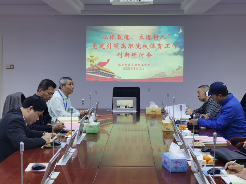 3月12日下午,通識教育學院召開“以體載德、立德樹人”黨建引領高職院校體育工作創(chuàng)新研討會,會議邀請原福建省教育廳體衛(wèi)藝語處正處級調(diào)研員江仁虎、集美大學體育學院鄭旭旭教授、福建師范大學體育科學學院張涵勁教授、福州大學體育部彭雪涵教授、福建農(nóng)林大學體育部黃國龍教授、福建醫(yī)科大學體育部董華教授等專家,學院黨委書記張海明、通識教育學院院長方儒欽、副院長金晶晶和郭建忠參加會議。