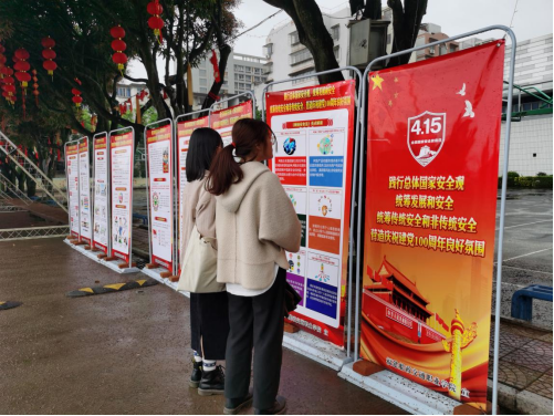 進(jìn)行國家安全知識展板宣傳和宣傳手冊發(fā)放,涉及國家安全基礎(chǔ)知識、總體國家安全觀、反間諜、反恐怖、反邪教、預(yù)防境外非政府組織非法境內(nèi)活動、打擊非法出版物、生物安全、防范傳銷和非法集資、防范電信網(wǎng)絡(luò)詐騙等內(nèi)容,增強了全院師生對國家安全內(nèi)涵的認(rèn)識,切實增強師生維護(hù)國家安全的意識和能力。