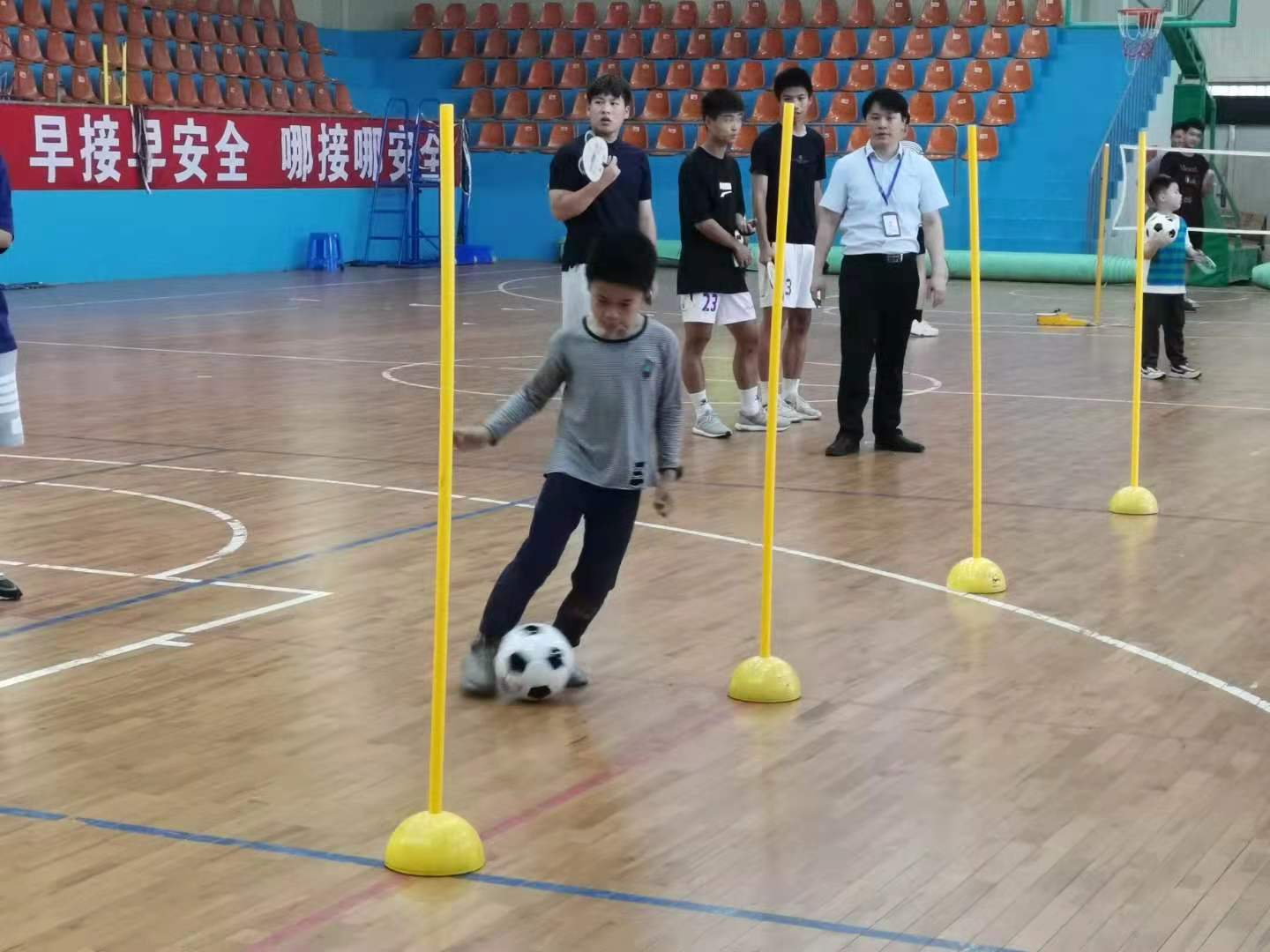 在運(yùn)球繞桿射門活動(dòng)中,通識(shí)教育學(xué)院教師王發(fā)振和學(xué)校足球俱樂(lè)部學(xué)生對(duì)兒童開(kāi)展愛(ài)國(guó)主義教育,并耐心指導(dǎo)兒童運(yùn)球繞桿和射門技巧,提高兒童的競(jìng)爭(zhēng)意識(shí),培養(yǎng)球感、協(xié)調(diào)性、靈敏性以及對(duì)足球運(yùn)動(dòng)的興趣。