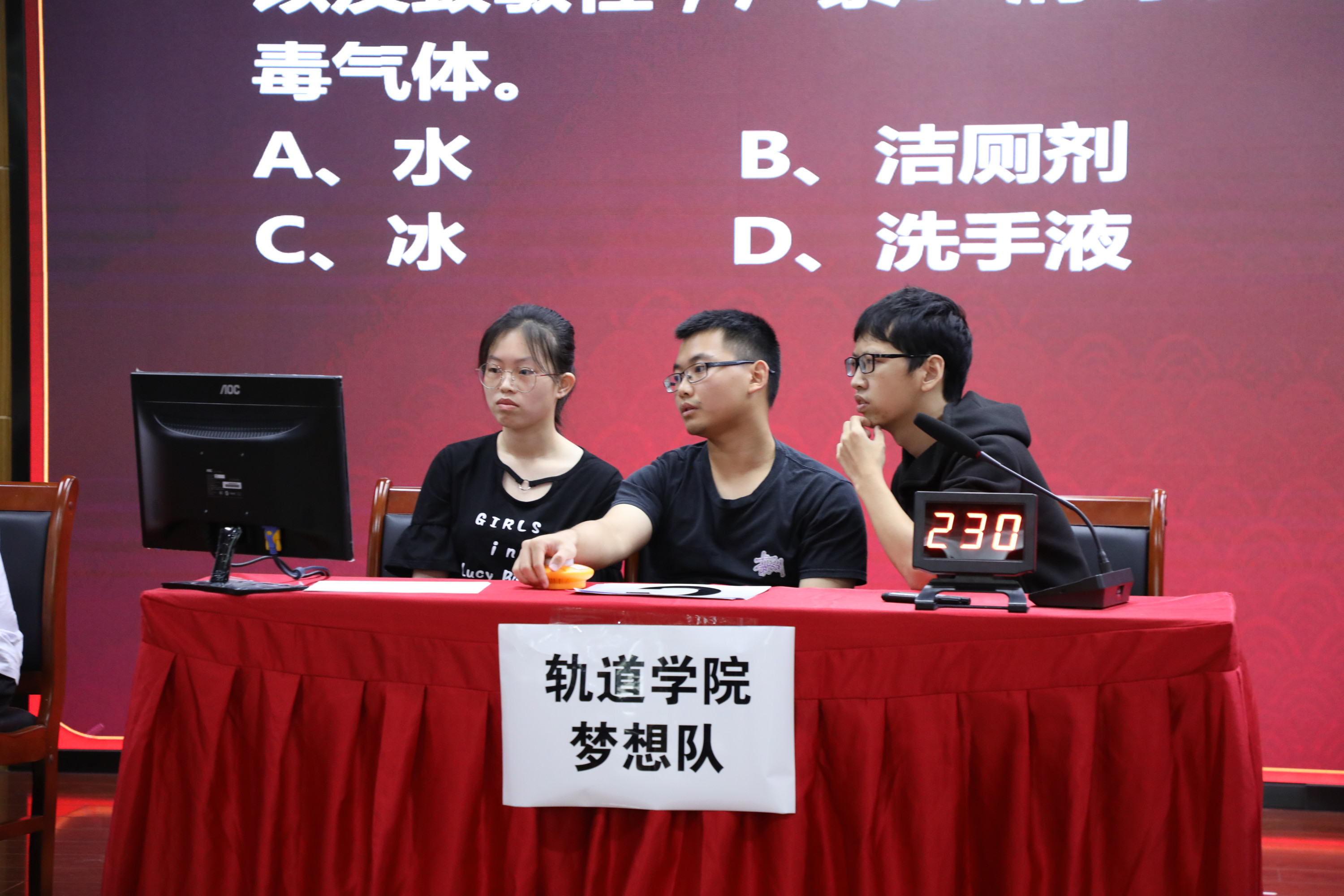 本輪共60題搶答題,使用搶答器搶答、口頭答題。每答對1題加分10分,答錯不扣分。本輪結(jié)束后,根據(jù)積分淘汰一支隊伍,剩下兩支隊伍晉級,本輪分?jǐn)?shù)全部清零,每支隊伍各有100分基礎(chǔ)分進(jìn)入下一輪比拼。