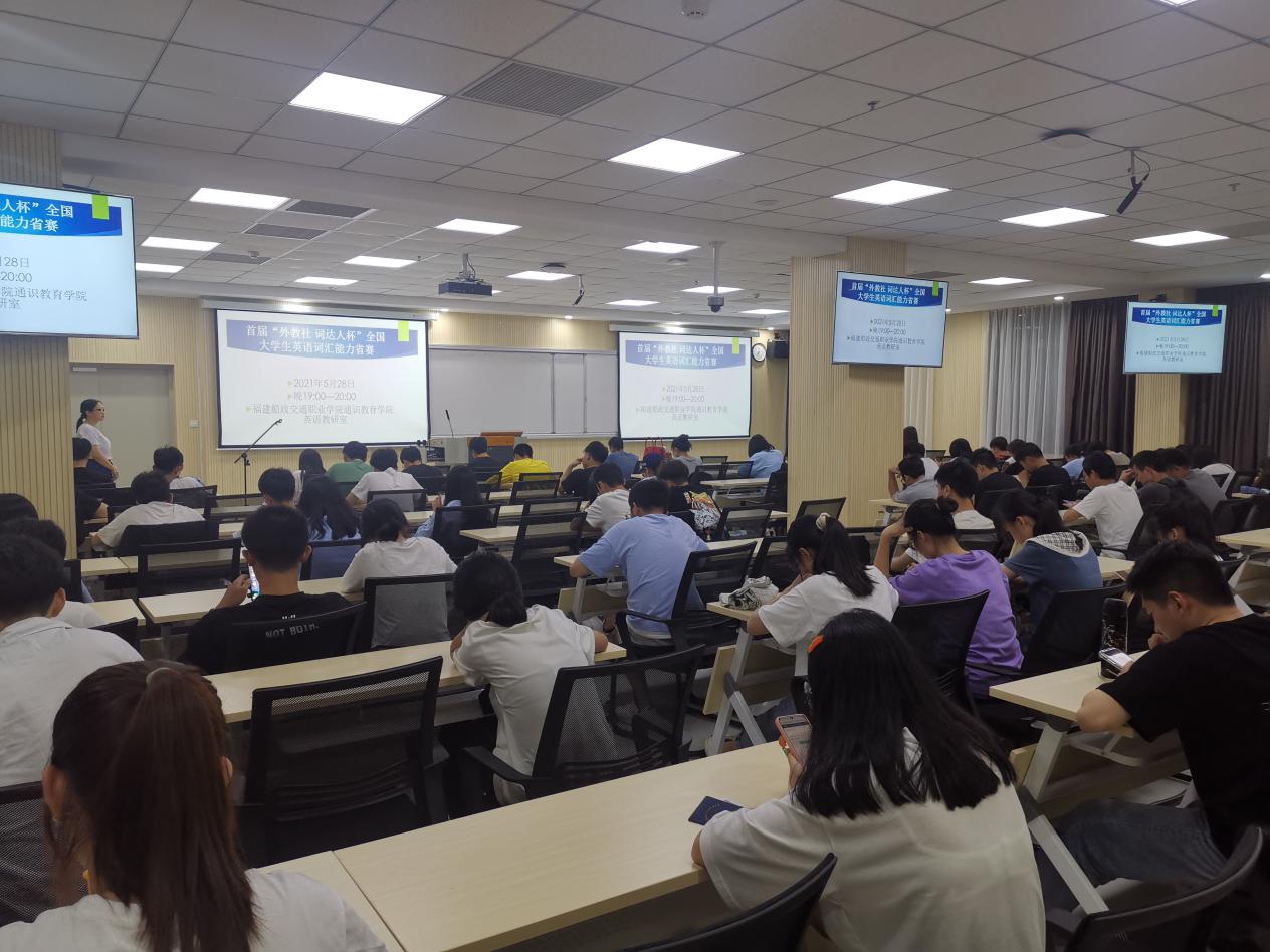 校賽于4月正式啟動(dòng),5月12日晚20:00-21:00,全校共2479名學(xué)生參賽,前200名選手代表我校參加福建賽區(qū)省賽的選拔。經(jīng)過激烈的角逐,我院代表隊(duì)30名選手在全省1600名選手中獲得省賽特等獎(jiǎng)晉級全國賽。6月6日上午10:00—11:00,30名學(xué)生在北區(qū)2號樓305,通過“詞達(dá)人”英語詞匯智慧學(xué)習(xí)平臺在線參加全國決賽,按照組委會要求認(rèn)真組織、中監(jiān)考,確保了比賽結(jié)果公平公正。最后,在來自全國各地近8000名選手中,我校3名學(xué)生脫穎而出,分別榮獲全國決賽一等獎(jiǎng)和三等獎(jiǎng)。